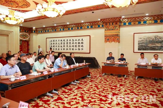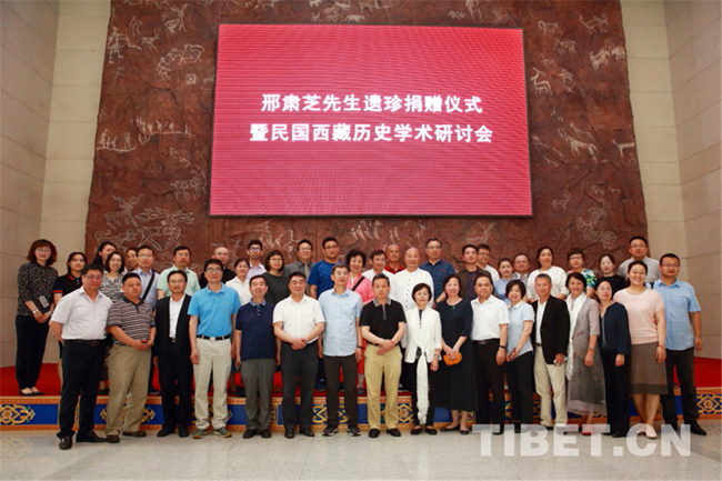 图为捐赠仪式结束后,嘉宾与学者在中国藏学研究中心西藏文化博物馆合影留念。(中国西藏网 记者/许娜)凡转载该作品,须注明来源中国西藏网和署著作者名,否则将追究相关法律责任。