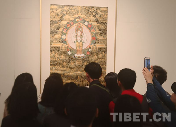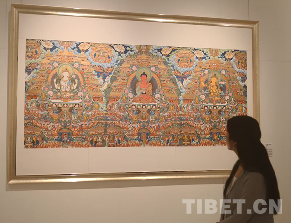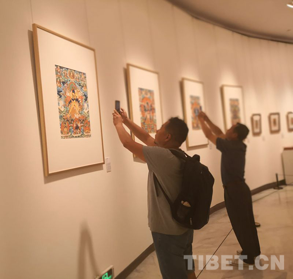 图为“梵境传心——娘本唐卡艺术展”活动现场。摄影:王淑