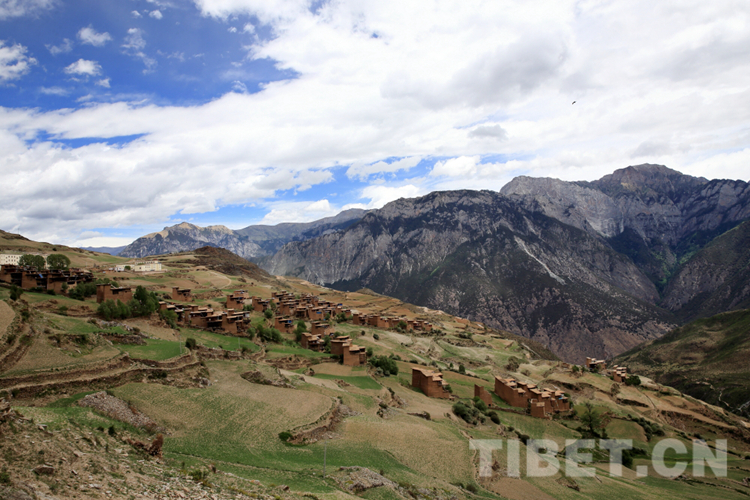 中国西藏网讯 在西藏自治区昌都市贡觉县三岩片区,民居建筑基本为“碉楼”式建筑,高大宏伟,连片成群,在西藏民族建筑中别具风格。5月28日,记者来到贡觉县雄松乡,见到了独具特色的碉楼“城堡群”。