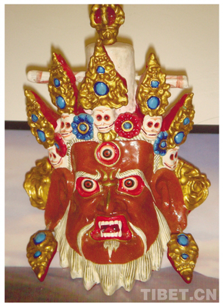 图为萨迦泥塑面具。其历史悠久,有着900多年的制作历史,是萨迦县当地农牧民利用当地资源在家制作而成。