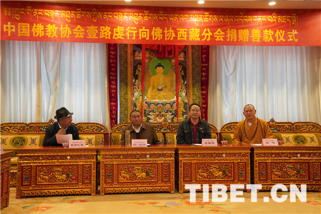 西藏自治区政协副主席、中国佛教协会西藏分会党组书记、常务副会长索朗仁增,西藏自治区政协副主席、中国佛教协会副会长、西藏分会会长、西藏佛学院院长珠康•土登克珠活佛等相关领导及宗教界人士出席了捐赠仪式。