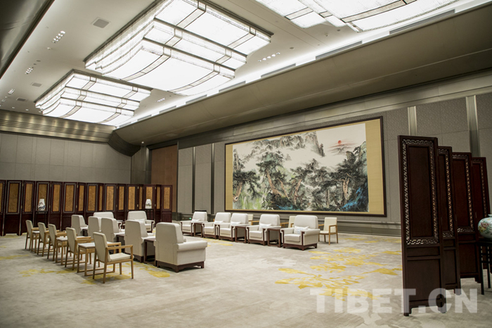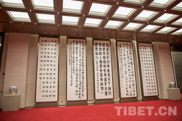 一层小范围会议室外的走廊休息区,悬挂着五幅气韵非凡的书法作品。记者现场采访了解到,仅用六个月就建成的青岛国际会议中心在建筑初期就充分考虑了后继利用问题,建筑全部采用环保材料,确保会后运营使用,充分展现了节俭务实、风清气正的办会精神。(中国西藏网 记者/李元梅)