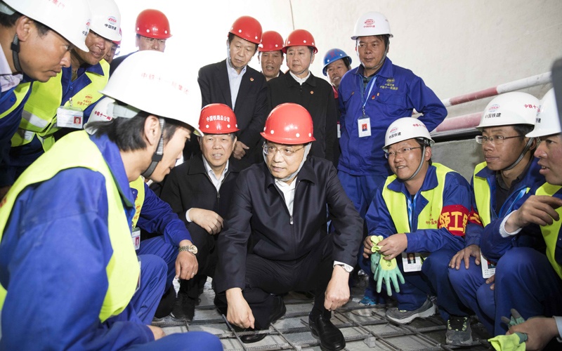 7月26日,李克强总理在山南市川藏铁路拉林段施工现场。来源:中国政府网