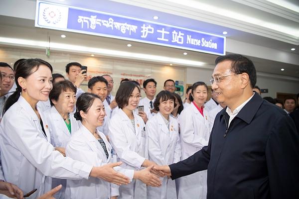 图为李克强看望援藏医护人员。图片来源:中国政府网