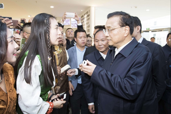 李克强一下飞机就来到林芝西嘎门巴村,他走进群众家中关切询问生活情况,村民们说通过易地扶贫搬迁,现在住房好、道路通,收入比过去多得多,李克强祝他们生活越来越幸福。他说,脱贫攻坚、富民兴藏重在发展,要以习近平新时代中国特色社会主义思想为指导,贯彻落实党中央、国务院部署,立足西藏实际,在可持续发展中实现民生不断改善。