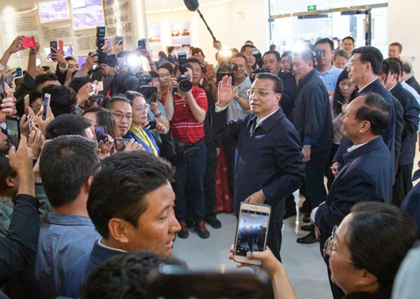 图为李克强总理来到位于拉萨市柳梧新区的“柳梧蜂巢+创新中心” 图片来源:中国政府网