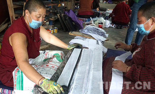 图为白玉寺觉姆正在印刷经文。摄影:杨悦笙