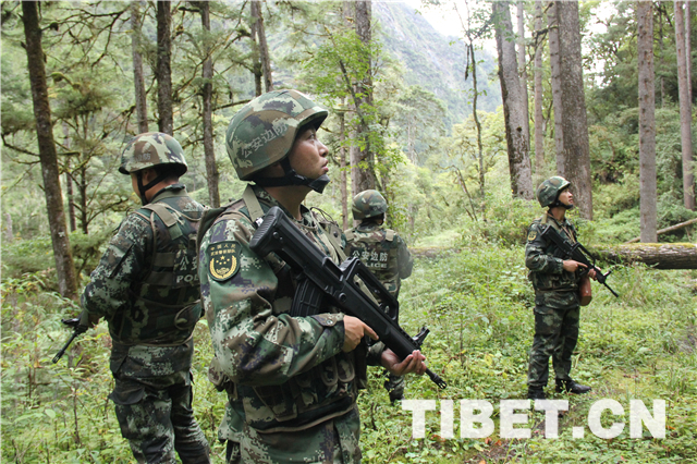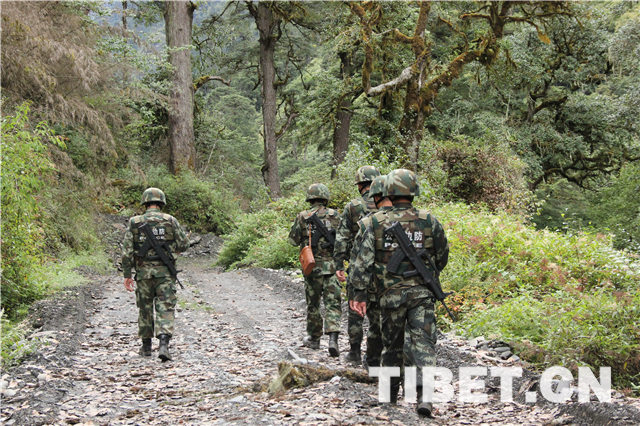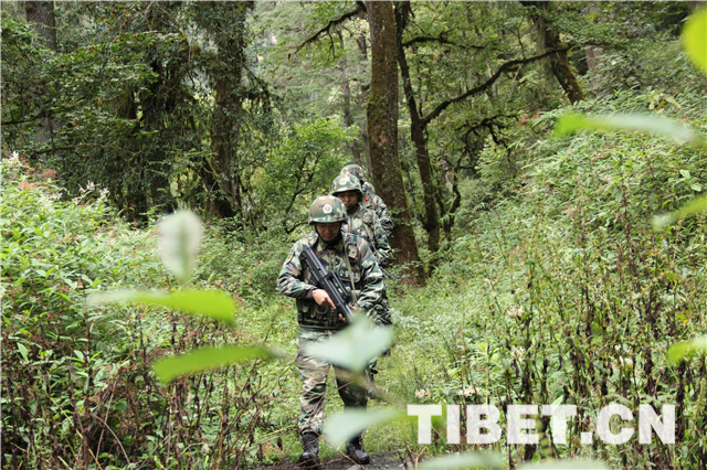 图为边防战士在丛林深处巡逻