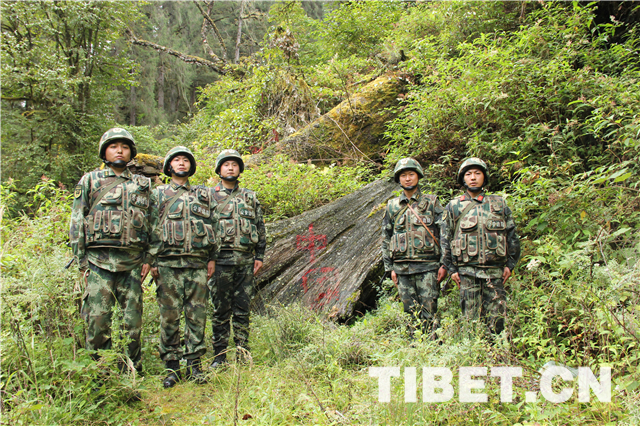 图为边防官兵与“中国”合影