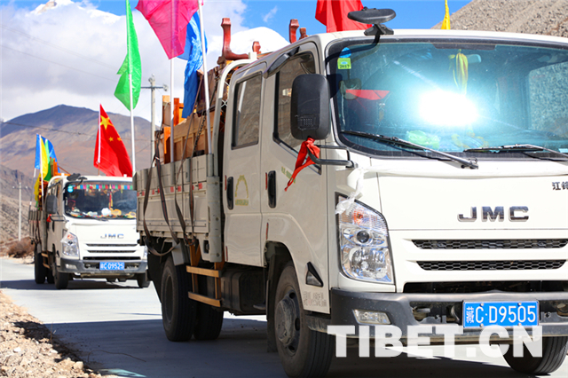 图为满载群众家具的车辆正驶向边境一线的新居。