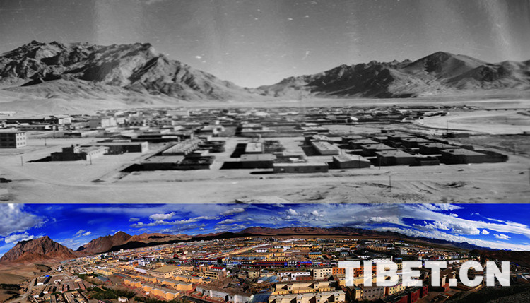 图为1980年与2009年的普兰县。摄影:米玛次仁