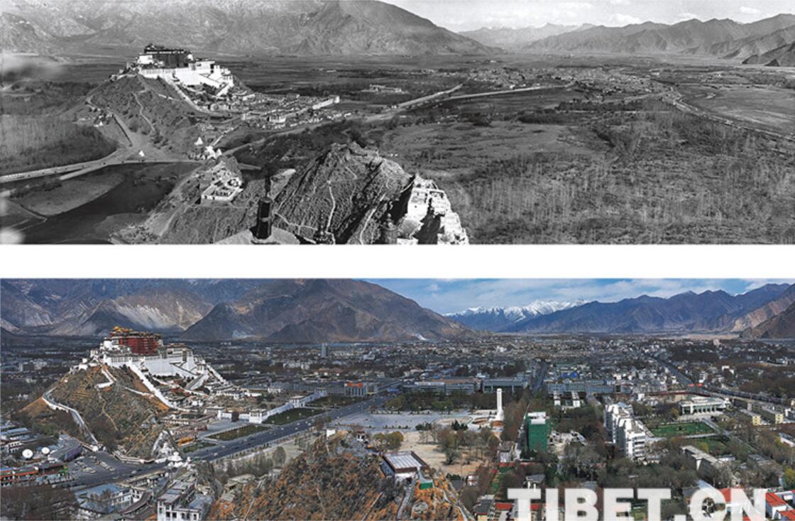 图为1942年和2005年拉萨全景。上图摄影:德木•丹增加措 下图摄影:德木•旺久多吉