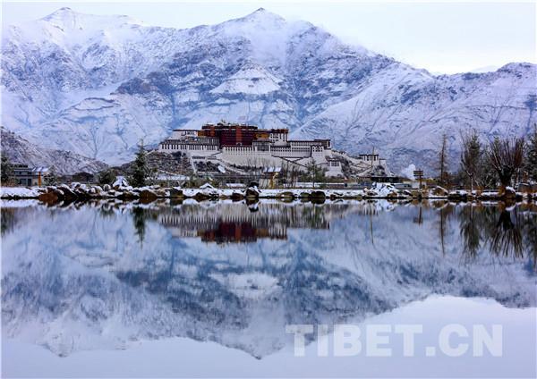 图为雪后的布达拉宫在雪山和云雾的映衬下显得格外美丽壮观。