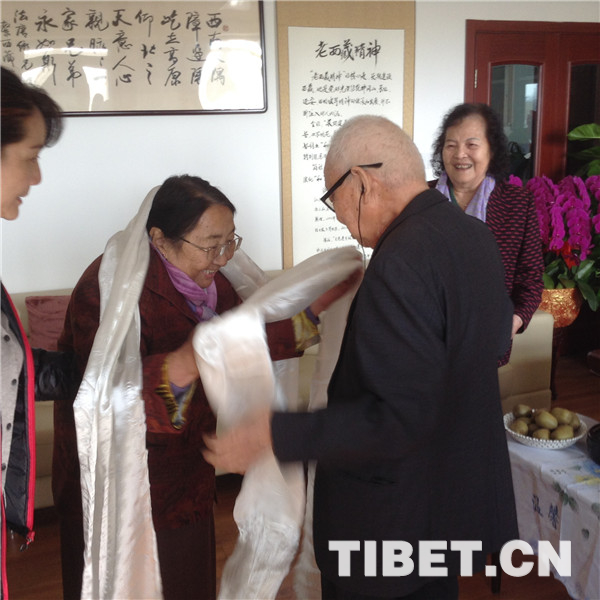 中国西藏网讯 2018年11月2日,我在晚上的新闻联播节目中,看到习近平主席同全国妇联新一届领导班子集体谈话的新闻时,电视里多次出现了西藏女活佛桑顶•多吉帕姆•德庆曲珍的画面,使我特别兴奋。我和女活佛相识相交几十年,感情非同一般,我们已经有好几年没见面了。我马上拿起电话和她联系,互相问候,当她得知我住院刚出院时,立即决定会议结束后要到家里来看望我,我推辞后她仍然坚持要来家里看我。按以前的习惯,她到北京来都是我去看望她,这次就破例同意她来家里看我。我刚出院身体尚未恢复,感觉有点体力不支,手脚不灵活,尤其腕子部分疼痛无力。家人得知女活佛要来家时,都很高兴,准备迎接她的到访。