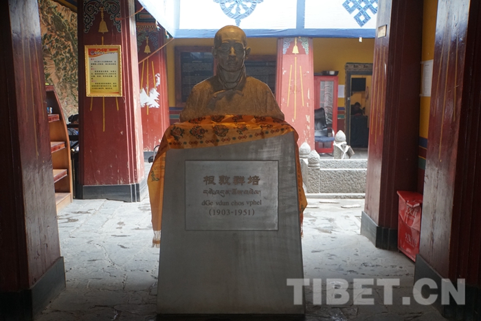 图为纪念馆门口根敦群培的雕像。 摄影:孙健