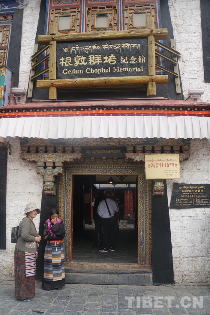 中国西藏网讯 在熙熙攘攘的八廓街上,根敦群培纪念馆静静地矗立着,门匾下随风飘动的香布和阿嘎土的古朴气息,给人更加强烈的历史感。不时会有三三两两的游客或者当地人进到馆内,认真地了解根敦群培先生的生平事迹,接受一次深刻的爱国主义教育,并将先生的思想、文化带到更远的地方。