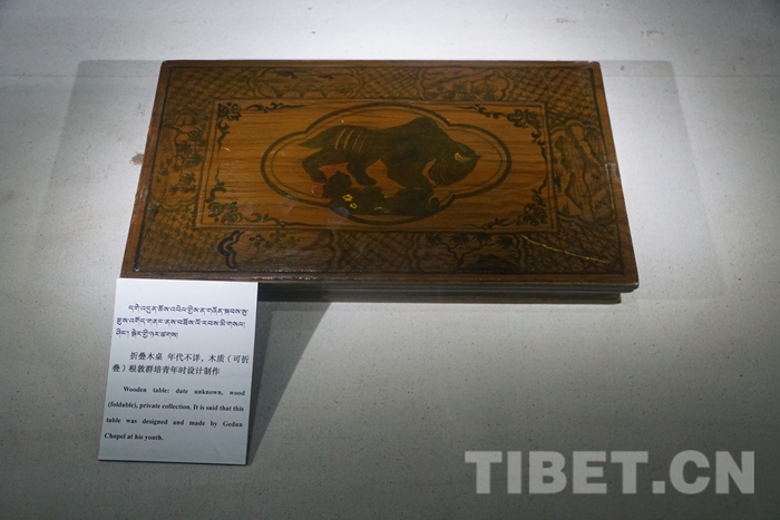 图为纪念馆内展出的根敦群培青年时设计制作的折叠木桌。 摄影:孙健