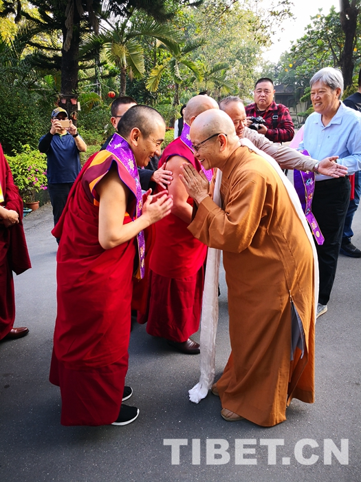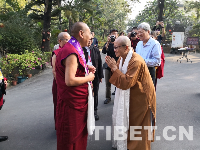 中国西藏网讯 12月15日,中国藏语系高级佛学院交流团来到台湾高雄市古严寺讲经弘法,古严寺住持慧度法师率僧众迎请交流团一行。