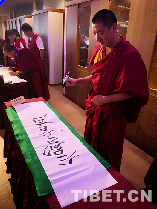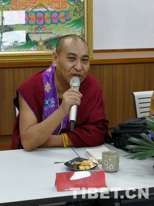图为交流团团长、中国藏语系高级佛学院副院长郭莽仓活佛在座谈会上发言。