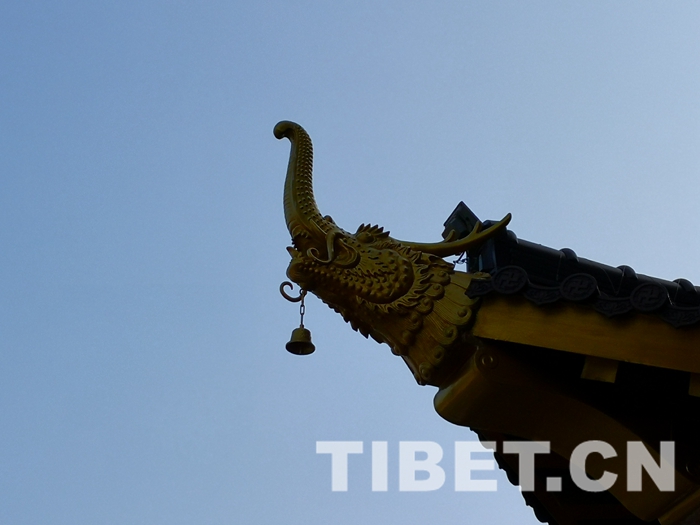 图为古严寺弥陀殿的摩羯鱼屋角。