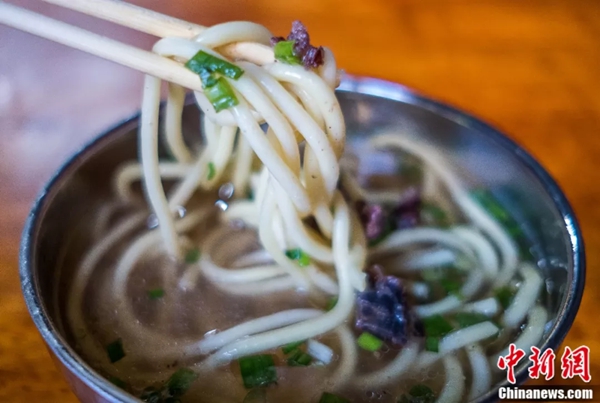 图为用牦牛肉汤熬制的藏面。何蓬磊 摄