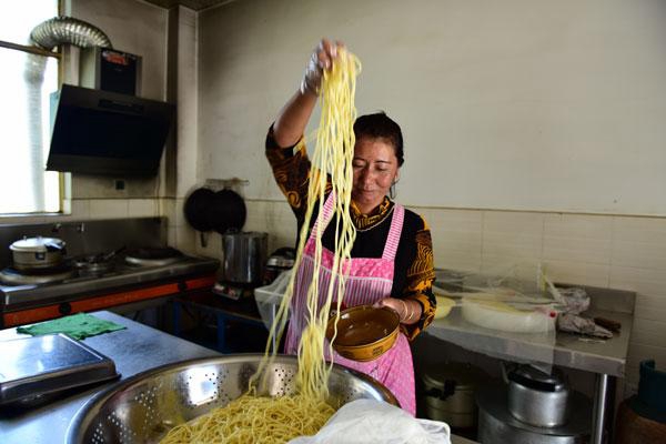 图为益西在制作藏面。图片来源:中国西藏新闻网 扎巴旺青 摄