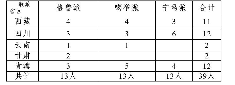 (一)格鲁派计划招收西藏4人,四川3人,青海3人,甘肃2人,云南1人。