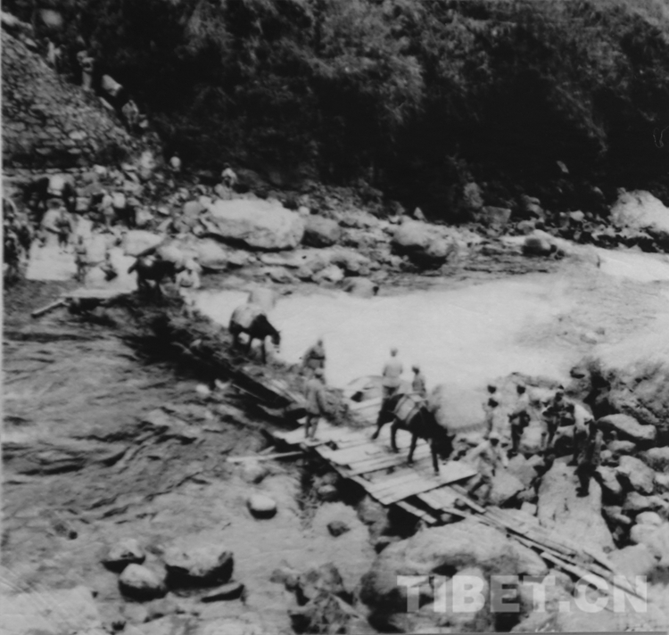 图为十八军战士修路过“老虎嘴”。 图片由王勉之提供