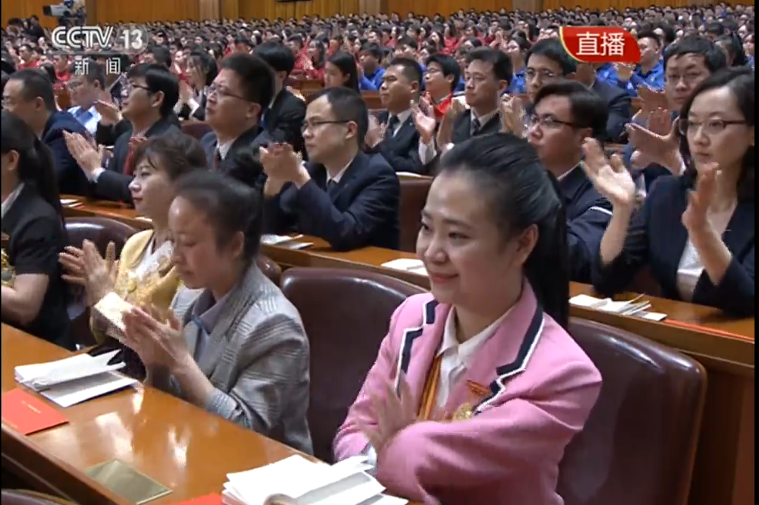 图为纪念五四运动100周年大会现场 来源:央视截图