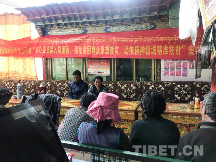 图为琼吉(前右)在向群众进行扶贫宣传。图片由琼吉提供
