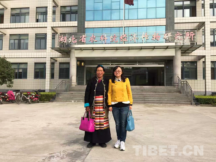 图为琼吉(左)在湖北省农科院与专家合影。图片由琼吉提供