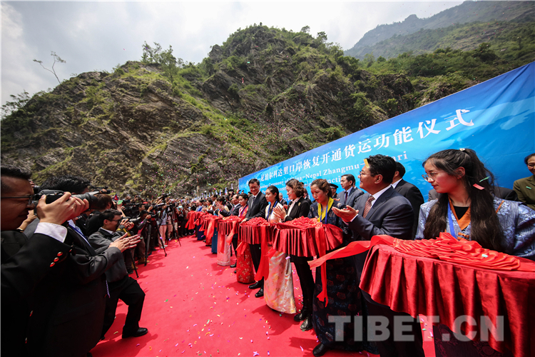 图为中国樟木-尼泊尔科达里口岸恢复开通货运功能仪式。摄影:何宇恒