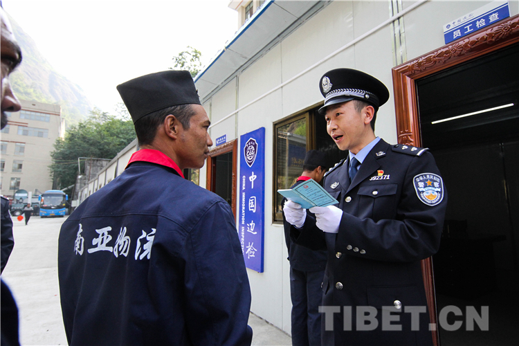 图为聂拉木出入境边防检查站的移民管理警察对入境人员进行检查。摄影:何宇恒