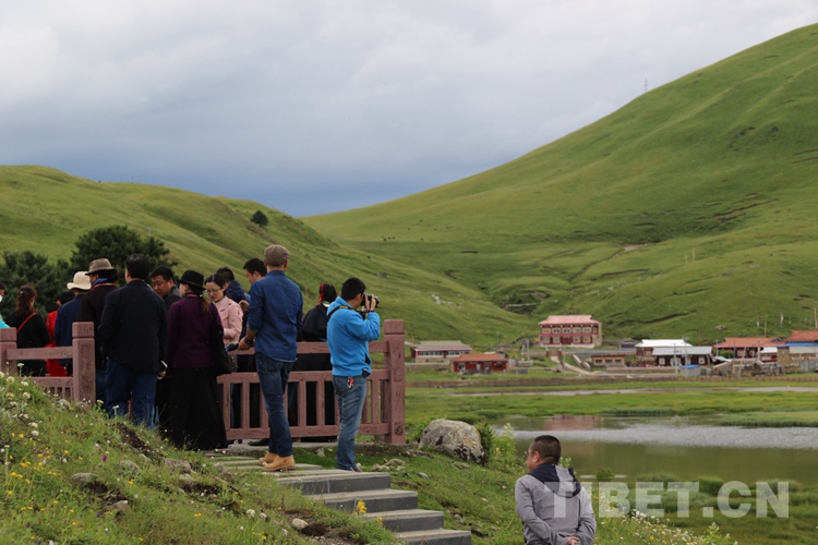 顺着草原直走,来到珠姆措,相传格萨尔王妃珠姆在此洗头后这里就变成了碧湖,不少摄影爱好者在这里拍摄,有的在草原上、有的在民居楼顶、有的在步游栈道旁、有的在路边,似乎都舍不得停下手中的快门。来自成都的张洵说:“看到路边有个龙灯草原的牌子就开车拐了进来,虽然进来的路有点窄,但进来后发现这里别有洞天,为了留下更好的图片我在这条路上已经来回跑了四五遍了,还是觉得不过瘾。”