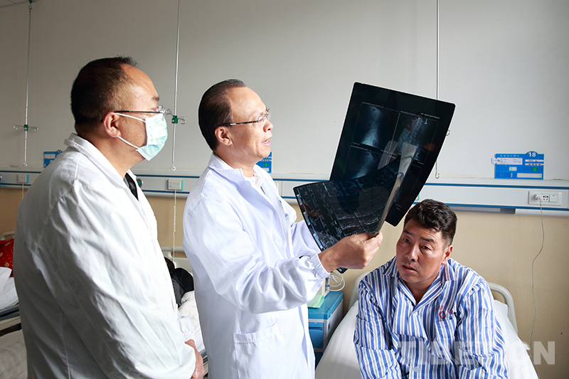 “这个病人(格茸此里)的主要病症是左下肢疼痛麻木无力,走不了长路,这是由于病人进行高强度的体力活动,负重比较大,造成下腰椎神经受损,基本丧失劳动力。”李淳德主任介绍说,“今天我们为他做了腰椎管减压植骨融合手术,手术很顺利。等病人麻醉清醒以后,手术效果会立竿见影,下肢的疼痛会明显减轻或者消失,一个半月左右的时间就可以恢复正常。”
