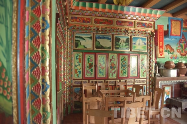 图为洛登家,墙上的壁画都是洛登自己画的 摄影:王媛媛