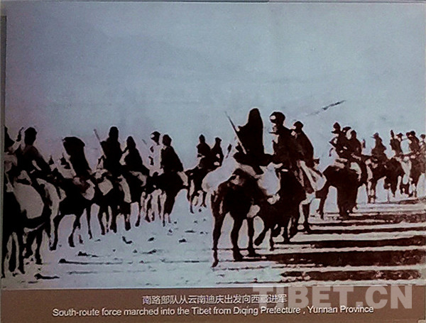 中国西藏网讯 1950年至1951年,云南省迪庆藏族自治州中甸(2001年易名香格里拉县,2014年撤县设市)、德钦县、维西傈僳族自治县三县成为中国人民解放军南路进军西藏的必经要道,被确定为进军基地。期间,三县投入大量的人力、畜力、物力,运送粮秣及军需至藏边各驻军点,修筑丽江巨甸至德钦大石头马车路,建盖德钦、西藏察隅军营、仓库等,圆满完成了支援和平解放西藏的光荣任务。(中国西藏网 记者/王茜 图片翻拍自迪庆红军长征博物馆)