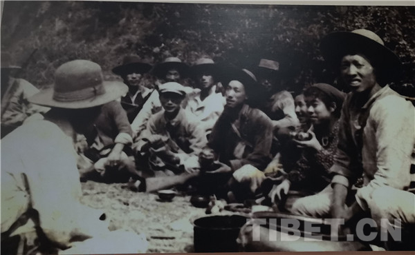 入藏途中,“维西以外至科麦段,须连续通过高山大河,该区人烟稀少,粮食困难。”图为羊咱的藏族同胞自发送食品慰劳援藏运输队民工
