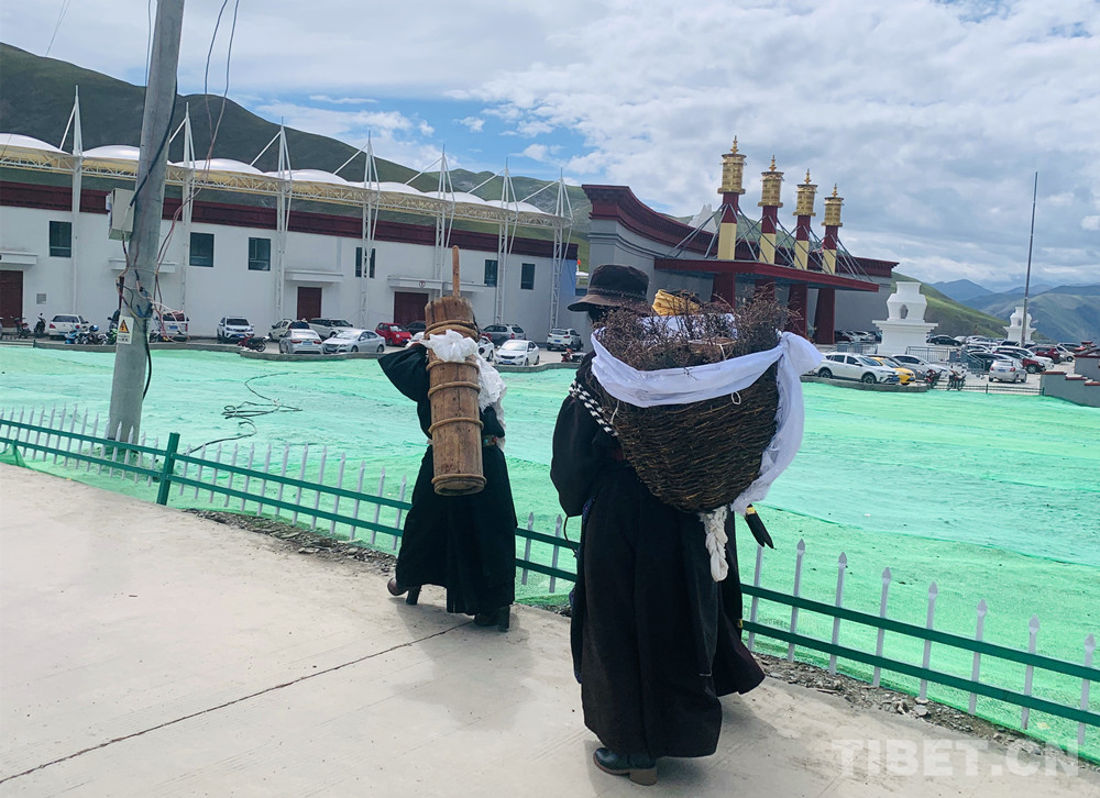 图为称多县周边居民陆续来到活动现场提前做好准备 摄影:周晶
