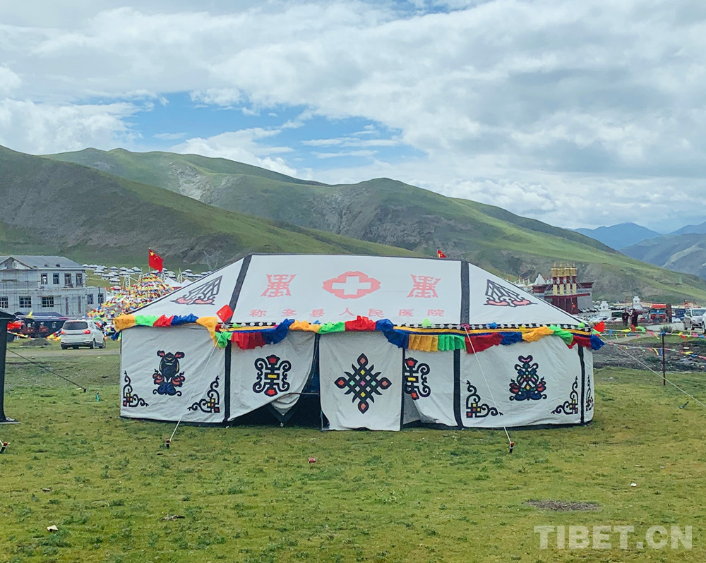 图为称多县人民医院帐篷,为文化节提供医疗保障 摄影:周晶