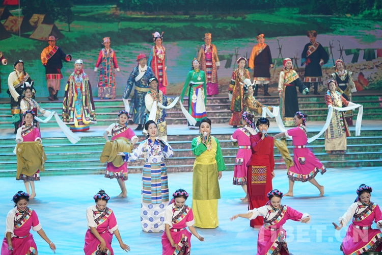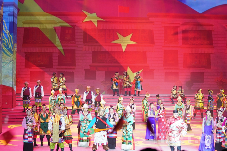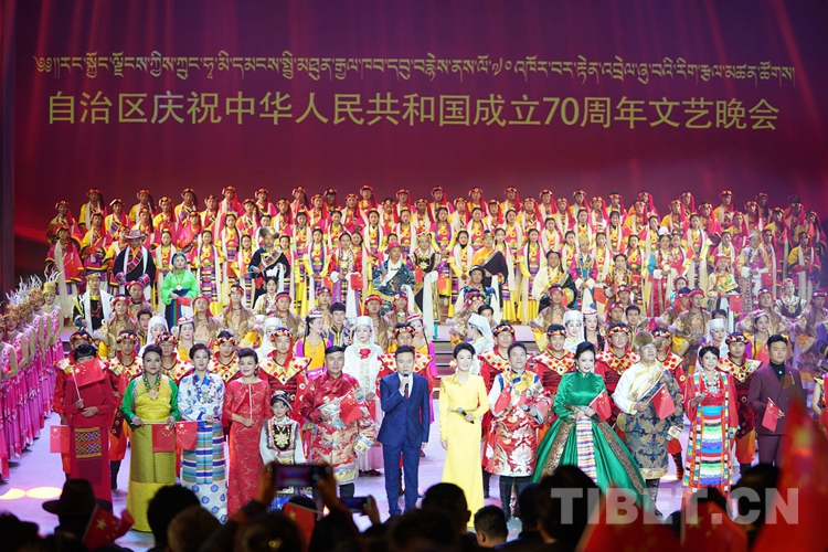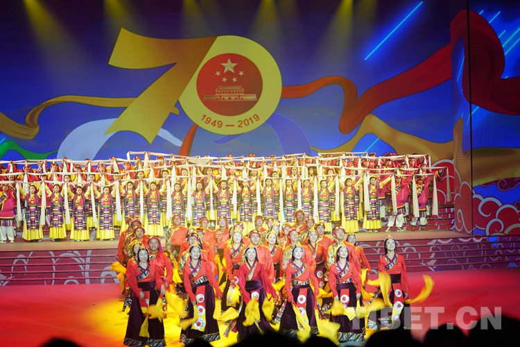 中国西藏网讯 欢歌起舞迎盛世,为表达西藏各族人民群众对共产党的无限热爱和对祖国母亲的深深祝福,9月28日晚,由西藏自治区党委宣传部、西藏自治区文化厅主办、西藏自治区歌舞团承办的西藏自治区庆祝中华人民共和国成立70周年文艺晚会在藏戏艺术中心举行。