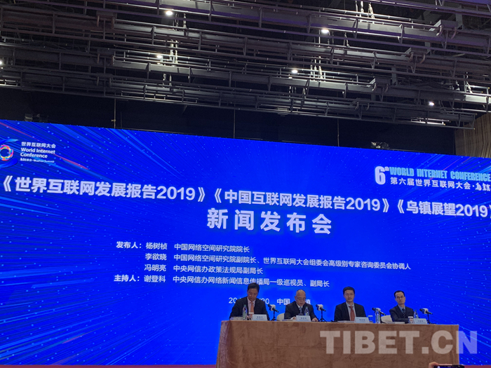 中国西藏网讯 10月20日下午3时,第六届世界互联网大会在浙江乌镇国际会展中心网剧场召开新闻发布会,正式发布了由中国网络空间研究院编写的《世界互联网发展报告2019》和《中国互联网发展报告2019》蓝皮书。