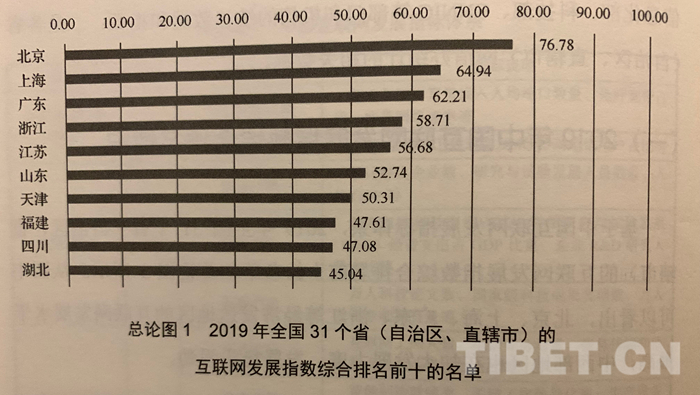 图为2019年中国互联网发展综合指数排名前十