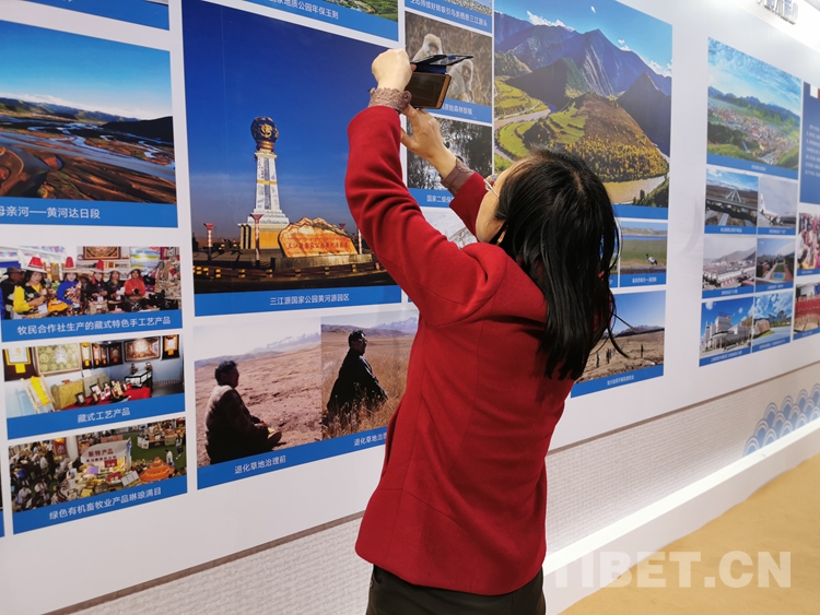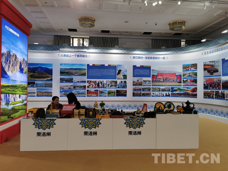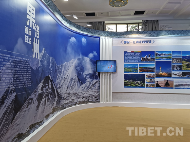 图为“大美青海——新中国成立70周年青海民族自治地方发展成就展”果洛州主题馆一角 摄影:泽仁措姆