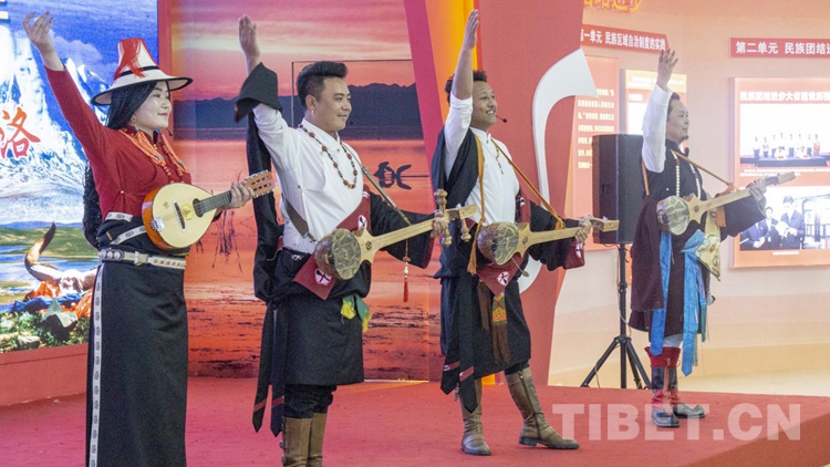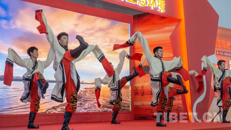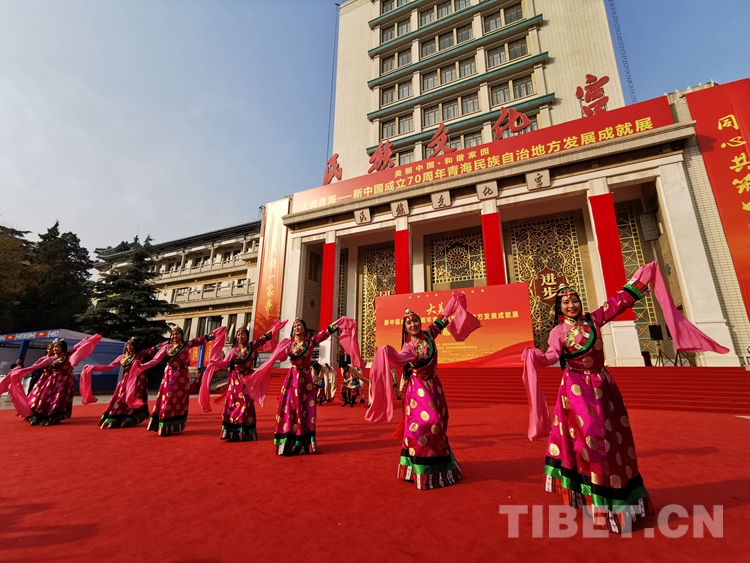 图为“大美青海——新中国成立70周年青海民族自治地方发展成就展”果洛主题日上的文艺演出 摄影:泽仁措姆