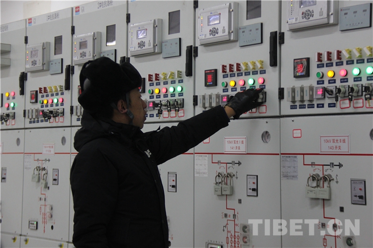 图为电力施工人员在双湖变电站合上电力开关 摄影:赵二召