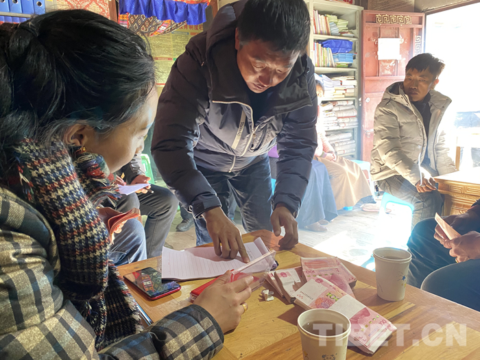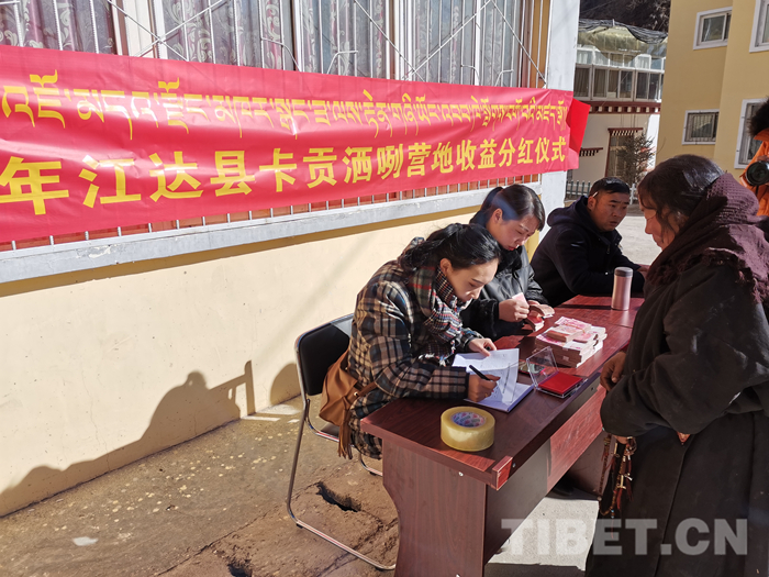 分红仪式现场,村民们排队等候工作人员念到自己名字,然后上前签字确认、领钱回家,体会付出和收获的喜悦。江达县旅游发展局相关工作人员在为村民分红的同时,鼓励村民们在接下来的一年里,再接再厉,勤劳致富。