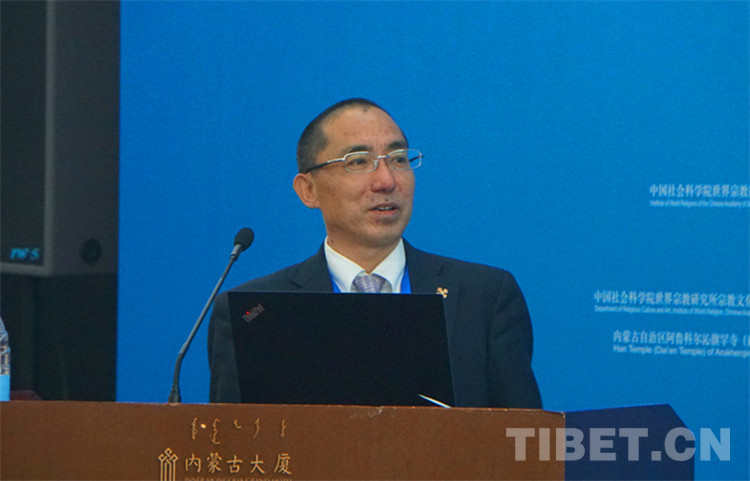 中国藏学研究中心李德成认为,中华民族是多元一体化的民族,在中华民族多元体一体化的历史进程中,各领域无数仁人志士作出了杰出贡献。藏传佛教界具有悠久的爱国主义传统,众多高僧大德在实现和维护祖国统一等方面发挥了重要作用。他在主旨演讲中详细介绍了早期满蒙藏关系史中的一位重要人物——蒙古族高僧一世察罕达尔汗活佛拉喜额尔和,其在加强满族、蒙古族、藏族地区之间政治和文化联系等方面作出了重要贡献。