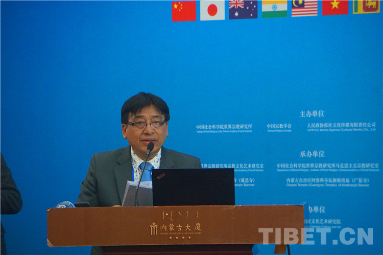 图为李德成作题为《一世察罕达尔汗在满蒙藏关系史中的作用》的主旨演讲 摄影:王茜