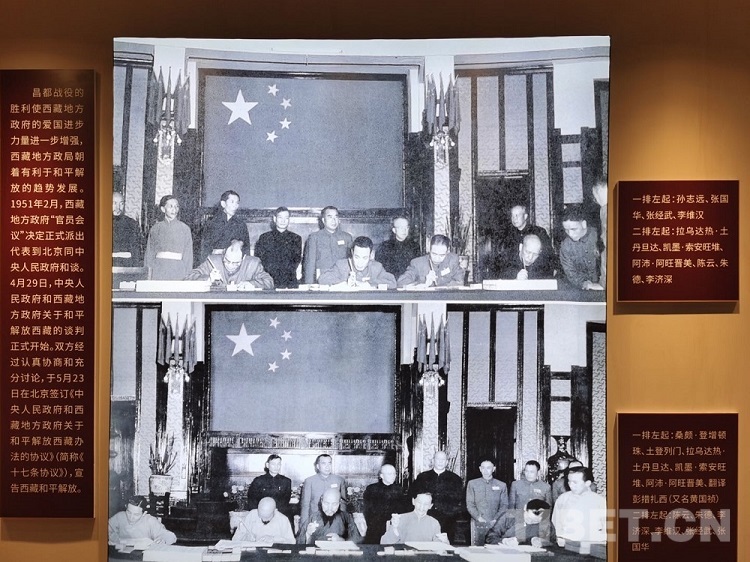 图为展厅内《十七条协议》签订的历史图片 摄影:王淑